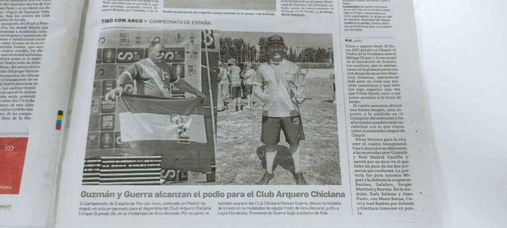 Por su parte Enrique Guzmán Gil ha resultado Subcampeón de España en la modalidad de Arco desnudo. Después de una fase clasificatoria discreta, avanzó en la fase eliminatoria  hasta alcanzar la semifinal y obtener la medalla de plata.